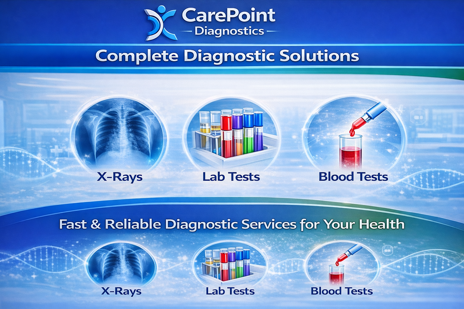 At CarePoint Diagnostics, we offer comprehensive diagnostic services including X-Ray imaging, laboratory testing, and blood tests—all designed to provide accurate and timely results. Our advanced equipment and experienced professionals ensure precise reports that help doctors make informed decisions quickly. With fast processing, reliable results, and patient-focused care, we make your healthcare journey smooth, convenient, and stress-free.